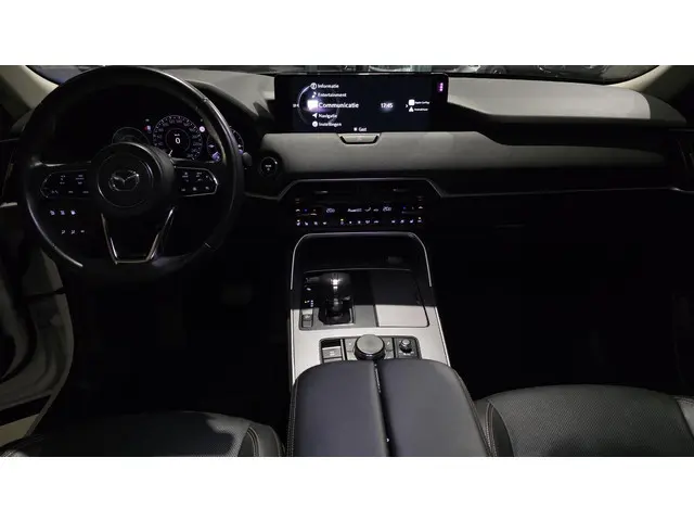 Garantie t/m maart 2029.Alle technologie in de Mazda CX-60 is er op gericht om uw rit veilig en gemakkelijk te laten verlopen. Mooier kan het eigenlijk niet: de combi van elektromotor en verbrandingsmotor. Met deze hybride Mazda CX-60 kunt u alle kanten op. Een lederen interieur staat al decennia voor stijl en klasse. Ook bij deze Mazda CX-60. In dit voertuig hoeft u nooit meer kou te lijden dankzij functies als stoelverwarming en verwarmbare achterbank, evenals een verwarmbaar stuur. Bij de uitrusting van deze auto horen onder meer 20 inch lichtmetalen velgen, LED koplampen, dakspoiler, in delen neerklapbare achterbank, LED-achterlichten en verstelbare lendensteunen.