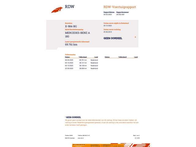 Voertuiggegevens van deze Mercedes-Benz A-Klasse