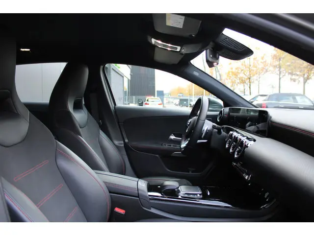 Bij de bouw van de Mercedes-Benz A-klasse wordt niets aan het toeval overgelaten. Vandaar dat hier een auto staat die in optimale conditie verkeert. Mag het een beetje exclusief en sportief? Mooi, want deze is uitgevoerd met AMG-styling. Met zijn benzinemotor en automatische transmissie is dit een prima auto voor nog vele kilometers. Tijdens gure dagen is het prettig zitten in de verwarmbare voorstoelen. In het interieur domineren de sportstoelen, die er niet alleen stijlvol uitzien, maar die u ook optimaal ondersteunen tijdens de rit. Bij de zeer complete uitrusting van deze auto behoren ook 18 inch lichtmetalen velgen, LED koplampen, AMG-styling, donker getint glas achter, in delen neerklapbare achterbank en verstelbare lendensteunen.Het digitale dashboard vertelt u alles wat u wilt weten voor een slimme, comfortabele en veilige rit. De achteruitrijcamera brengt precies in zicht wat zich achter u bevindt en toont een glashelder beeld op hoge resolutie. Een geluidssignaal waarschuwt hoeveel ruimte u nog heeft. Dankzij Connected Services houdt u de auto nog gemakkelijker in topconditie. Elke dag. Voor de veiligheid op de weg is het goed dat u uw ogen op de weg kunt houden en uw handen aan het stuur. Want het audiosysteem, met DAB-ontvangst, en het navigatiesysteem met harde schijf bedient u vanaf het stuurwiel en met spraakbediening. Met de electronic climate control selecteert u de gewenste temperatuur. Het systeem doet de rest. En deze auto heeft ook WIFI-hotspot, regensensor, cruise control, sportstuurwiel, automatisch dimmende buitenspiegels en centrale deurvergrendeling met afstandsbediening als standaard uitrusting.