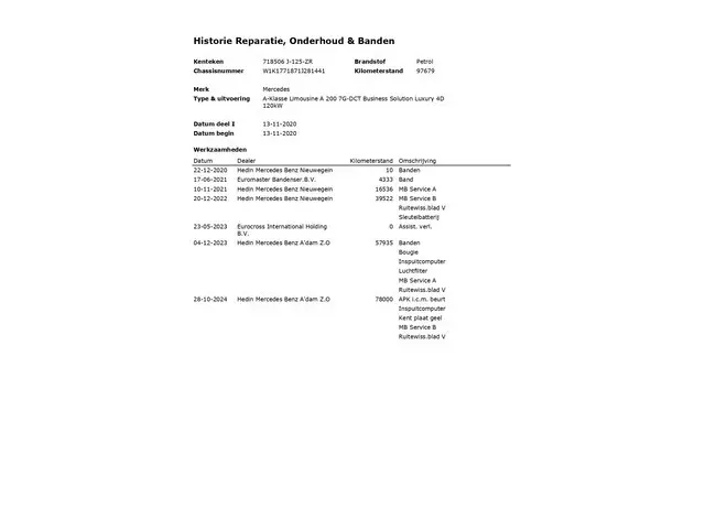 Voertuiggegevens van deze Mercedes-Benz A-Klasse