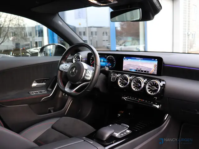 De vooruitstrevende techniek van deze Mercedes-Benz A-klasse vormt een harmonieuze eenheid met de stijlvolle vormgeving. Het comfort en de veiligheid staan bovendien op hoog niveau, zoals dat hoort bij een auto van een gerenommeerd Duits merk. Als ook de uitstraling een beetje pittig mag, komt de AMG-styling mooi van pas. De uitstekende prestaties van deze auto komen van de viercilinder benzinemotor en de automatische transmissie. In de verwarmbare voorstoelen zitten is elke keer een welkom gevoel. In het interieur domineren de sportstoelen, die er niet alleen stijlvol uitzien, maar die u ook optimaal ondersteunen tijdens de rit. Zon en frisse lucht krijgen vrij spel dankzij het elektrisch bediende glazen panoramadak. Vergeet halogeen; deze koplampen gebruiken de allernieuwste matrix LED-technologie met maximale lichtopbrengst zonder de tegenligger te hinderen. Bij de uitrusting van deze Mercedes-Benz horen onder meer 18 inch lichtmetalen velgen, AMG-styling, donker getint glas achter, in delen neerklapbare achterbank en verstelbare lendensteunen.Het digitale dashboard rekent mee, denkt mee en rijdt mee. Alle info overzichtelijk in beeld, overal. Kommaar-kommaar-kommaar, aldus de achteruitrijcamera. Iedere centimeter vrije ruimte komt haarscherp in beeld. Schadevrij inparkeren maar! Veilig en comfortabel rijden wordt nog eens versterkt door Connected Services, zodat u diverse vitale functies van de auto altijd kunt checken in de app. Voor de veiligheid op de weg is het goed dat u uw ogen op de weg kunt houden en uw handen aan het stuur. Want het audiosysteem, met DAB-ontvangst, en het navigatiesysteem met harde schijf bedient u vanaf het stuurwiel en met spraakbediening. Electronic climate control verwarmt of koelt het interieur met een druk op de knop. Ook WIFI-hotspot, regensensor, cruise control, sportstuurwiel, automatisch dimmende buitenspiegels en centrale deurvergrendeling met afstandsbediening horen tot de voorzieningen op deze auto.