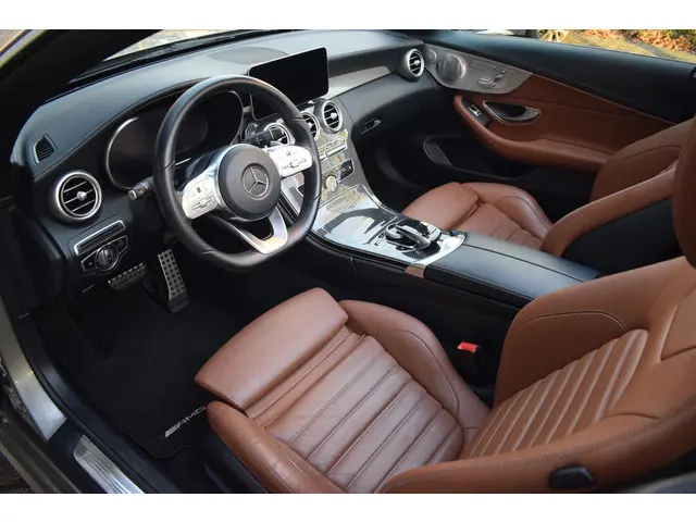 Of u nu stadsritten maakt of langdurig op snelwegen bent, het rijden met de Mercedes-Benz C-klasse Cabrio is steeds een genoegen. Het onderstel biedt comfort en sportiviteit, het interieur is ruim en weldadig en deze auto heeft alle systemen aan boord om uw ritten zo veilig mogelijk te maken. Als ook de uitstraling een beetje pittig mag, komt de AMG Line Exterieur mooi van pas. De aandrijving van deze Mercedes-Benz wordt verzorgd door een viercilinder benzinemotor en een automatische transmissie. Zit u goed? De stoelen zijn eenvoudig instelbaar dankzij de elektrische bediening met geheugen. Open rijden was nog nooit zo eenvoudig. Het cabriodak opent soepel en stil dankzij de elektrische bediening. Opvallend is de geavanceerde matrix LED-verlichting met daglichtkwaliteit. De koplampen dimmen automatisch het deel van de lichtstraal waar voor- of tegenliggers in rijden. De overige segmenten blijven aan en verlichten de weg maximaal. Bij de zeer complete uitrusting van deze auto behoren ook 18 inch lichtmetalen velgen, AMG Line Exterieur, sportonderstel, warmtewerend glas, neerklapbare achterbank en LED-achterlichten.Altijd de benodigde functies in beeld? Het digitale dashboard zorgt ervoor. Met de 360 graden camera, verzorgd door vier camera's, wordt rijden in drukke steden of het navigeren in nauwe ruimtes een koud kunstje. Gemak dient de mens. Dankzij de spraaksturing bedient u de belangrijkste functie met uw stem. Een smartphone met internetverbinding legt eenvoudig overal contact met de auto. U kunt functies activeren en de conditie van de auto monitoren. Muziek luisteren onderweg was nog nooit zo'n genoegen! Het high performance audiosysteem levert een unieke geluidservaring. Natuurlijk behoren navigatiesysteem met harde schijf, achteropkomend verkeer waarschuwing, automatische airconditioning, sportstuur met schakelpaddels, draadloos opladen en regensensor ook tot de uitrusting van deze complete auto.