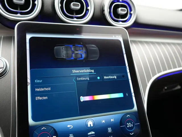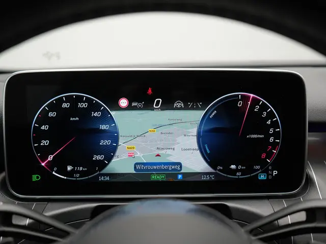 Met het digitale dashboard in deze auto kunt u de interface van uw cockpit personaliseren. De 360 graden camera wordt mogelijk gemaakt door vier camera's die tezamen werken om zo een uitgebreid zicht te bieden, wat van grote waarde is bij het navigeren door smalle straatjes en parkeerplekken. Met adaptive cruise control houdt de auto zelfstandig afstand tot uw voorligger. Een veiligheidsverhogende optie waarmee u comfortabel onderweg bent. Vanaf elke plek contact maken met deze auto: dat kan met behulp van remote services, die u simpel activeert met uw smartphone. De bediening van het audio-installatiesysteem en het navigatiesysteem met harde schijf gebeurt met knoppen op het stuur en als u wilt zelfs met uw stem. De audio is overigens voorzien van DAB-radio voor een altijd heldere ontvangst. Ook is de Mercedes-Benz uitgerust met: automatische airconditioning, sportstuur met schakelpaddels, draadloos opladen, regensensor, keyless entry en automatisch dimmende buitenspiegels.