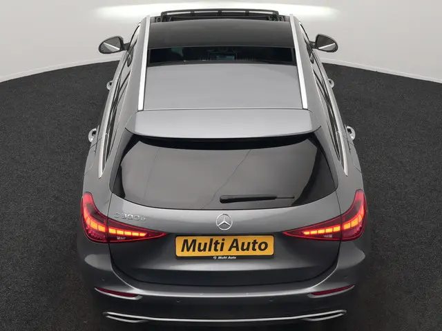 Mercedes-Benz C-klasse Estate 300 e Avantgarde Plug In Hybrid 313pk Dealer O.H PHEV | Panodak | Adaptive Cruise | 360 Camera | Digital Light | Lederen Sportstoelen Verwarmd | Keyless | Navigatie | Virtual | DAB+ | 18" L.M |Een auto als de Mercedes-Benz C-klasse Estate biedt een dynamiek en comfort die typerend zijn voor de producten van de Duitse autofabrikanten. Dit exemplaar is van het bouwjaar 2023, de teller staat op 64588 kilometer. Brandstofmotor, elektromotor? Deze hybride Mercedes-Benz C-klasse Estate combineert ze. En dat is te merken bij de pomp, want die ziet u voortaan minder vaak. Zon en frisse lucht krijgen vrij spel dankzij het elektrisch bediende glazen panorama dak; de elektrisch bedienbare achterklep maakt het u gemakkelijk en u voelt zich omgeven door luxe van het lederen interieur! De verwarmbare voorstoelen zijn een heerlijke extra optie, waarmee u uzelf en uw bijrijder een groot plezier doet. In het interieur domineren de sportstoelen, die er niet alleen stijlvol uitzien, maar die u ook optimaal ondersteunen tijdens de rit. De uitmonstering van deze auto wordt gecompleteerd door onder meer 18 inch lichtmetalen velgen, Full LED koplampen, donker getint glas achter, in delen neerklapbare achterbank en verstelbare lendensteunen.