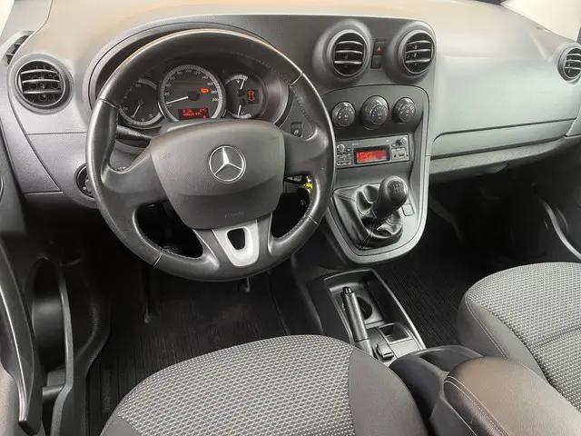 De Mercedes-Benz Citan vertegenwoordigt het beste van degelijk Duits design. De aandrijving komt voor rekening van een dieselmotor en een handgeschakelde vijfversnellingsbak. Onverhoeds de deur opengooien is een risico voor passerend verkeer. De schuifdeur aan de zijkant is dus gemakkelijker én veiliger. Verder is de Mercedes-Benz uitgerust met: warmtewerend glas, in hoogte verstelbare passagiersstoel, elektrisch bedienbare en verwarmde buitenspiegels, elektrisch bedienbare ramen voor, snelheidsafhankelijke stuurbekrachtiging en start-stopsysteem.Zuinig en zeker zoeven? Dan is de cruise control ideaal! Deze auto heeft airconditioning aan boord. Via de usb-aansluiting speelt deze auto uw muziek af via de luidsprekers. En deze auto heeft ook buitentemperatuurmeter, lederen stuur en centrale deurvergrendeling met afstandsbediening als standaard uitrusting.