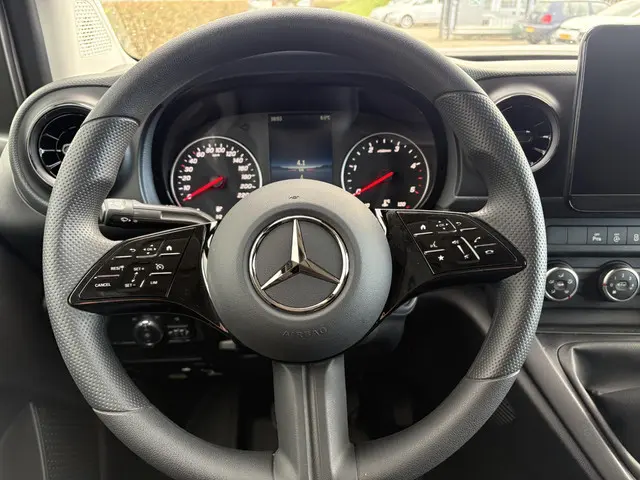 Aan boord van deze Mercedes-Benz houden verschillende geavanceerde systemen voor u de weg in de gaten. Ze waarschuwen u voor noodsituaties en kunnen in een aantal gevallen ook zelf ingrijpen. Wat deze auto ook kan, is lezen. Hij 'leest' voor u de verkeersborden tijdens de rit en attendeert u erop door ze op het dashboard te projecteren. Deze Mercedes-Benz Citan is ook behulpzaam als het gaat om een rechte koers. Het Lane-keeping systeem signaleert en corrigeert als u onbedoeld de rijstrooklijnen dreigt te overschrijden. Om te voorkomen dat u tijdens lange ritten achter het stuur in slaap valt, is deze auto voorzien van vermoeidheidsherkenning. U bent mede dankzij hill hold functie, autonoom remsysteem en bandenspanningcontrolesysteem steeds veilig onderweg.