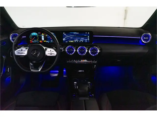 ✔ Denimblauw metallic met zwart AMG-interieur