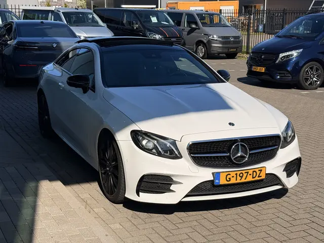 Meer Foto's volgenU rijdt gemakkelijk, comfortabel en zonder zorgen met deze Mercedes-Benz E-klasse Coupé. Het is een auto van het bouwjaar 2018. Omdat het oog ook wat wil, is de AMG-styling een heel aantrekkelijke plus. Met een viercilinder dieselmotor en een automatische transmissie beschikt deze Mercedes-Benz over uitstekende prestaties. Topklasse: daar hoort leren bekleding absoluut bij. 's Winters komen de verwarmbare voorstoelen heerlijk van pas. De sportstoelen geven u veel zitsteun. Het daglicht valt in overvloed via het elektrisch bediende panoramadak op het fraaie interieur. Ook is de auto voorzien van: 20 inch lichtmetalen velgen, LED koplampen, AMG-styling, donker getint glas achter, LED-achterlichten en verstelbare lendensteunen.
