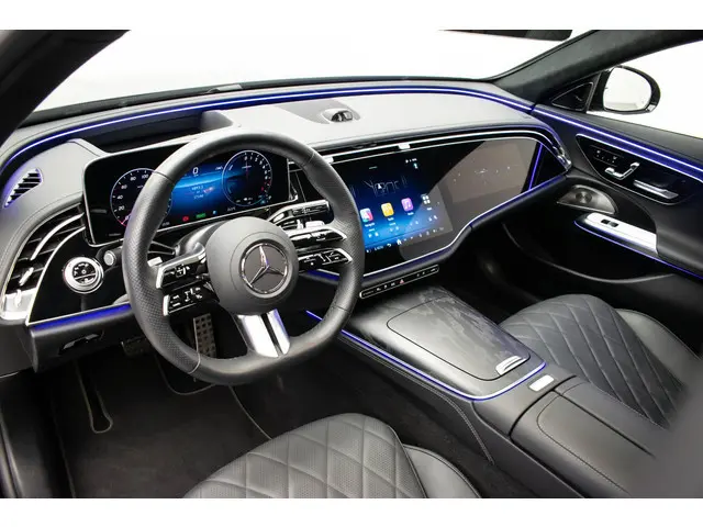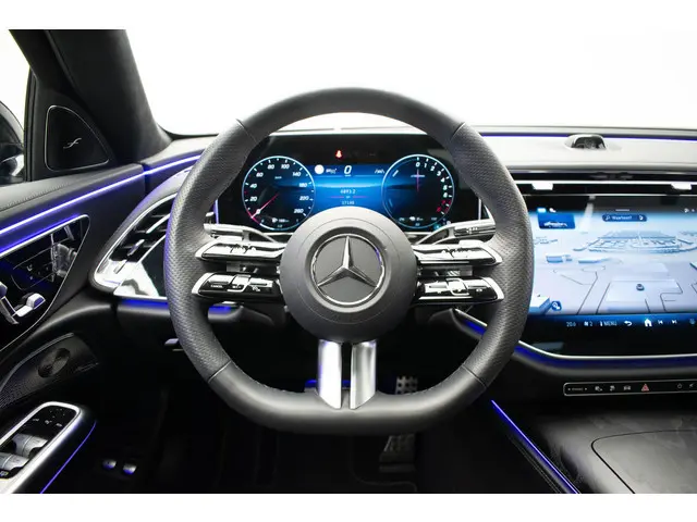 Het interieur van deze Mercedes-Benz E-klasse beschermt u als een veilige cocon. Het onderstel is ontworpen om de scherpste bochten en de slechtste wegen aan te kunnen en de motor reageert alert op ieder commando. Omdat het oog ook wat wil, is de AMG-styling een heel aantrekkelijke plus. Naast de verbrandingsmotor beschikt de auto ook over een elektromotor, die zorgt voor een extra laag brandstofverbruik. Ja, en die luchtvering, dat is wel heel prettig hoor. Stabiliteit, weinig windweerstand, optimaal contact met de weg. Een erg fijne extra. De auto is voorzien van een mooie en comfortabele lederen bekleding. Zit u goed? De stoelen zijn eenvoudig instelbaar dankzij de elektrische bediening met geheugen. Qua licht en ruimtelijk gevoel zit het helemaal goed met het elektrisch bediende panoramadak. De achterklep opent automatisch met een druk op de knop. Handig als u met volle handen staat. Deze Mercedes-Benz E-klasse heeft een verwarmd stuurwiel. Nooit meer koude handen onderweg. Bij de rijke uitrusting horen ook elektrische zonnerollo voor de achterruit, 20 inch lichtmetalen velgen, AMG-styling, adaptief dempingsysteem, warmtewerend glas en LED-dagrijverlichting.
