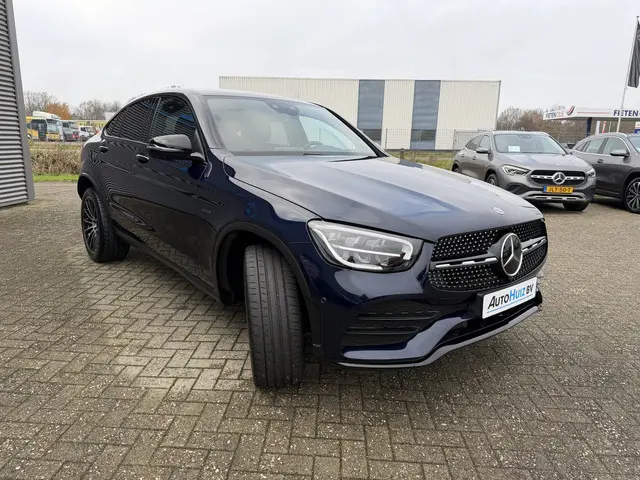 Nieuw binnen bij AutoHuiz BV Winschoten, een dealeronderhouden en zeer goed uitgeruste Mercedes-Benz GLC-klasse Coupé 300e 4MATIC AMG-Line in de kleur Cavansite Blue Metallic.AutoHuiz BV zal deze auto leveren inclusief garantie, een volle tank brandstof, volle accu en minimaal 12 maanden APK.