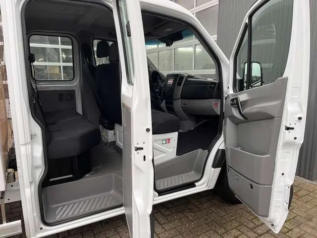 Een zeer nette Mercedes Sprinter 2.2CDI 115pk 366 Automaat Dubbele cabine Veegvuilkipper Kipper met Airco Navigatiesysteem Telefoonverbinding 7-Persoons uitvoering 1e eigenaar ex overheid open laadbak Pick-up Kieper Euro 6 Vuilniswagen SnipperwagenBinnenmaten laadbak zijn :