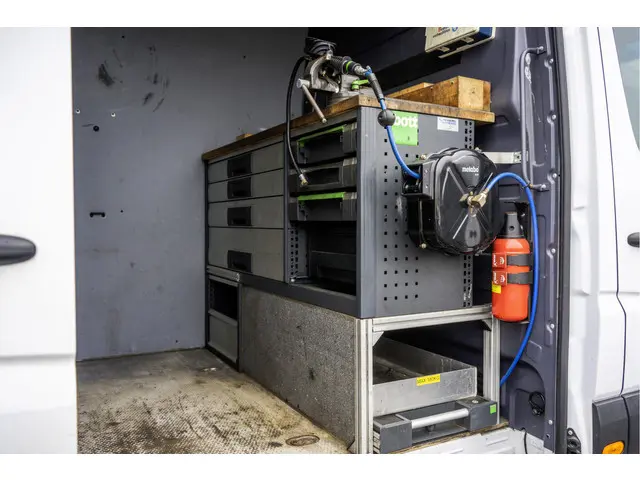 Deze verlengde en verhoogde Mercedes-Benz Sprinter heeft in de laadruimte een volledige bedrijfswageninrichting. Zo beschikt u over een werkbank met bankschroef en schuiflades, een stelling voor opslag en heeft u beschikking over een omvormer. De bedrijfswageninrichting is van Bott wat bekend staat om zijn kwaliteit en zijn lichtgewicht. Ook is de laadruimte uitgevoerd met een lichtgewicht aluminimum rijplaat die extra breed is uitgevoerd zodat u makkelijk grote goederen kan laden. Deze auto geleverd met een logisch verklaarbare Nationale Autopas en een volledige onderhoudshistorie. Mocht u graag wat extra foto's of een filmpje van deze auto ontvangen dan sturen wij u die natuurlijk graag per app of per mail. Wij hebben voor u nog even de meest praktische en luxe opties op een rijtje gezet:✅Centrale deurvergrendeling met afstandsbediening