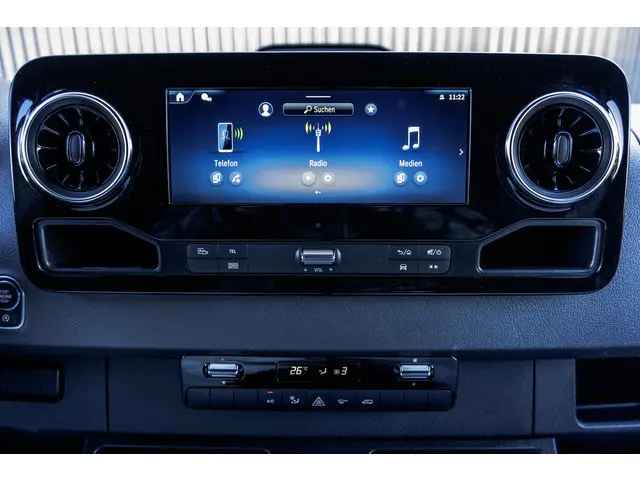 Lease v.a. €,- per maand. Bandenprofiel: Voor 8.1 mm en Achter 5.8 mm. Aantal sleutels / handzenders: 0 / 2Deze Mercedes Sprinter is het 2025 model (zonder bpm). Dit ziet u aan een update van het interieur. De auto heeft 60.181 verreden kilometers en is uitgevoerd in de extra verlengde en verhoogde uitvoering. Deze nette Sprinter is voorzien van het MBUX multimediasysteem met touchscreen, inclusief Bluetooth verbinding voor de telefoon. Verder beschikt hij over parkeersensoren voor en achter en een achteruitrijcamera, wat het manoeuvreren een stuk makkelijker maakt. Voor extra comfort zijn zowel de bestuurders- als bijrijdersstoel uitgerust met stoelverwarming.