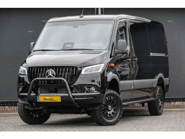 Mercedes-Benz Sprinter 4x4 319Cdi 190Pk 9G-tronic | L2H1 | 2x Schuifdeur | 4WD | AWD | Bullbar | Treeplanken | 18'' All Terrain | Obsidian Black