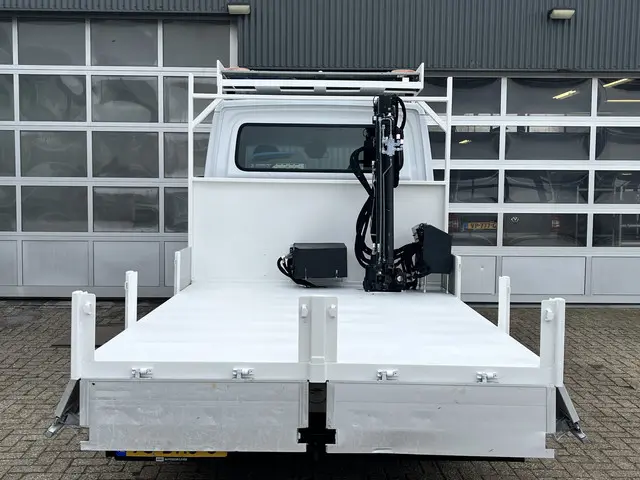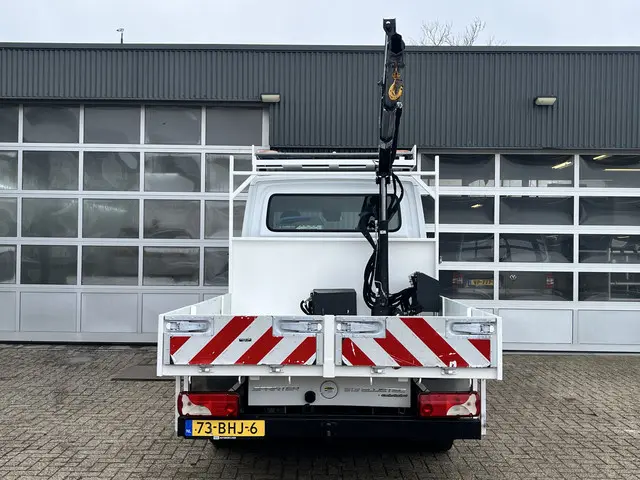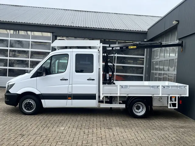 Mercedes-Benz Sprinter 513 CDI 366 Hiab Laadkraan 018T Trekhaak 2000 kg Airco 6 persoons uitvoering Open laadbak Pick-up Euro 6 Verkeersbord Actiebord Pijlenbord Bakwagen P-up Tachograaf 1e eigenaar ex gemeente