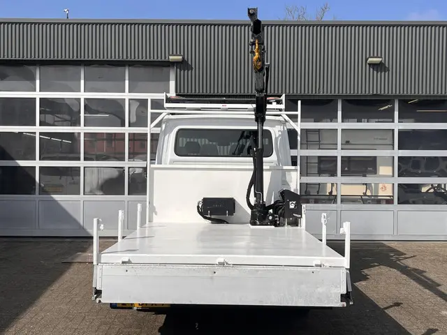 Mercedes-Benz Sprinter 513 CDI Hiab Laadkraan 018T Trekhaak 2000 kg Airco 6 persoons uitvoering Open laadbak Pick-up Euro 6 Verkeersbord Actiebord Pijlenbord Bakwagen P-up Tachograaf 1e eigenaar ex gemeente