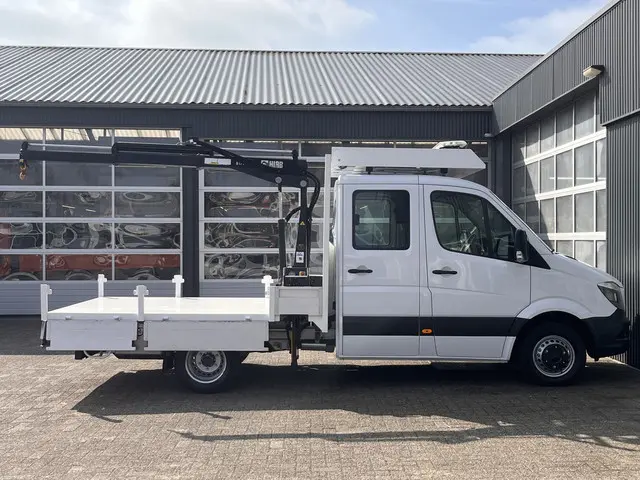 Een zeer nette Mercedes Sprinter 514 CDI 140pk Dubbele cabine Hiab Laadkraan 018T Trekhaak 2000 kg Airco 6 persoons uitvoering Open laadbak Pick-up Euro 6 Verkeersbord Actiebord Pijlenbord Bakwagen P-up Tachograaf 1e eigenaar ex gemeenteLet op C- rijbewijs kan terug Naar B-rijbewijs gekeurd worden door ons !!