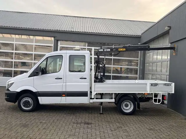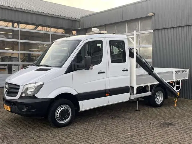 Een zeer nette Mercedes Sprinter 513 CDI 130pk Dubbele cabine Hiab Laadkraan 017T2 Trekhaak 2000 kg Airco 6 persoons uitvoering Open laadbak Pick-up Euro 6 Bakwagen P-up Tachograaf 1e eigenaar ex gemeenteLet op C- rijbewijs kan terug Naar B-rijbewijs gekeurd worden door ons !!