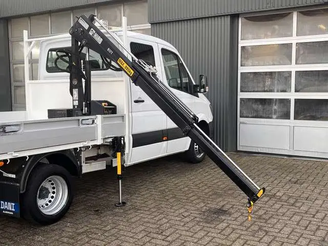 Mercedes-Benz Sprinter 513cdi 130pk DC Laadkraan Hiab 017T Airco Trekhaak 2000kg Open laadbak Euro 6 Pick-up 1e eigenaar Dubbele cabine Bakwagen Autolaadkraan Kraan