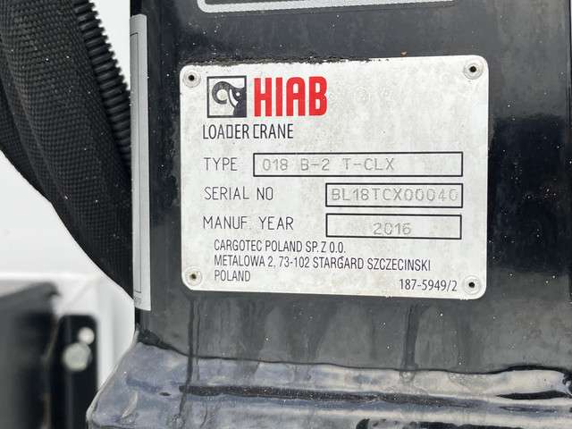 Kraan: Hiab 018, bouwjaar 2016, achter de cabine