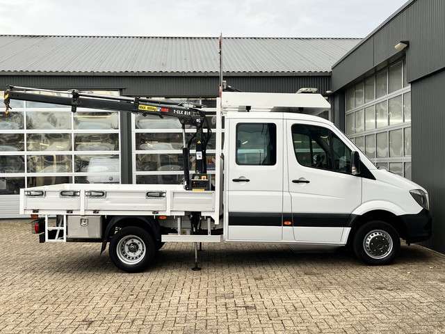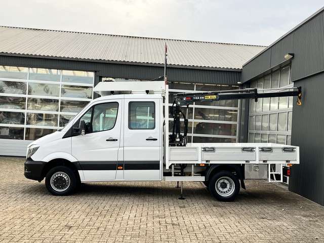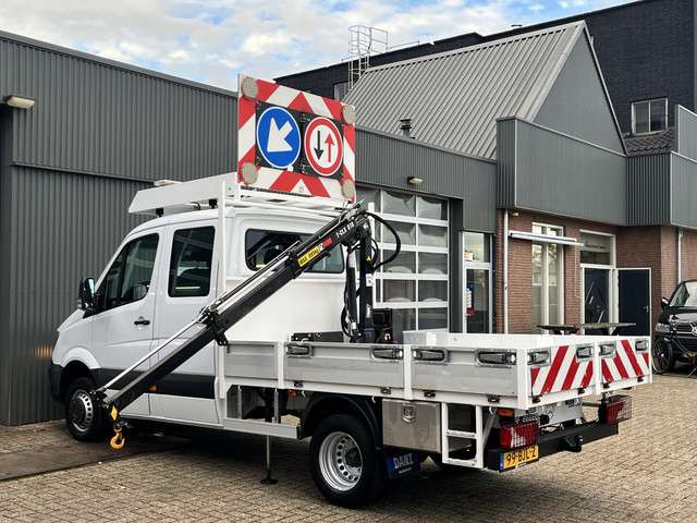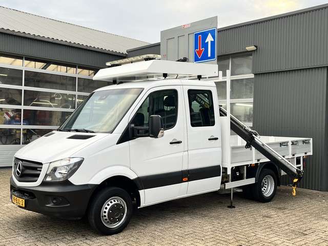 Mercedes-Benz Sprinter 514 CDI 366 Hiab Laadkraan 018T Trekhaak 3500kg Airco 6 persoons uitvoering Open laadbak Pick-up Euro 6 Verkeersbord Actiebord Pijlenbord Bakwagen P-up Tachograaf 1e eigenaar ex gemeente