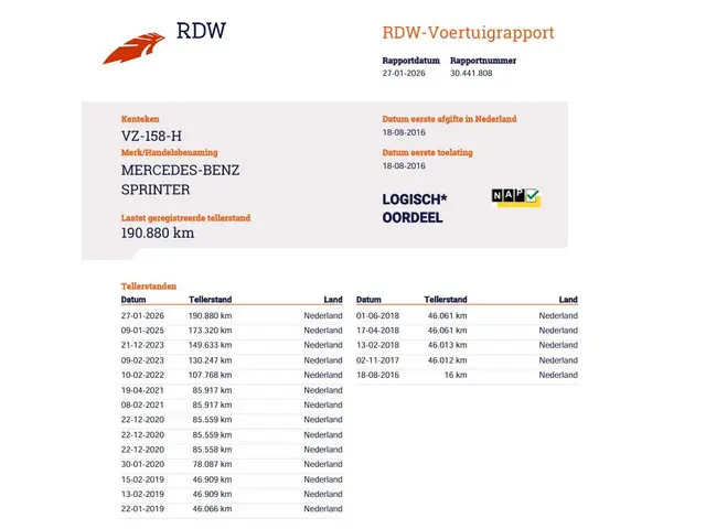 Voertuiggegevens van deze Mercedes-Benz Sprinter