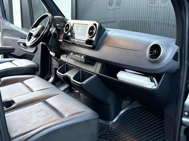 Deze Mercedes-Benz Sprinter 519 CDI dubbellucht is precies zo’n bestelwagen die gebouwd is om serieus werk te verzetten. Met zijn krachtige 3.0 V6 dieselmotor van 190 pk en 7G-Tronic automaat levert hij moeiteloze trekkracht, stabiliteit en duurzaamheid. De wielbasis van 3665 mm, het verhoogde dak en de doorlopende scheidingswand maken hem ideaal voor ondernemers die veel laadvolume én comfort eisen. Uitgevoerd in tenorietgrijs metallic ziet hij er bovendien strak en professioneel uit.Het interieur is verrassend luxe uitgerust. Denk aan MBUX met 10,25” touchscreen, digitale radio (DAB), smartphone-opbergvak met draadloos laden, regensensor, combi-instrument met kleurendisplay en semi-automatische airconditioning. De geveerde bestuurdersstoel met stoelverwarming, armsteun en verstelbaar stuur maken lange ritten een stuk relaxter. De tweezits bijrijdersbank en diverse opbergvakken (boven hemelfront, boven voorruit, onder cockpit) zorgen voor een praktische en overzichtelijke werkplek.