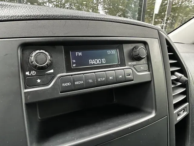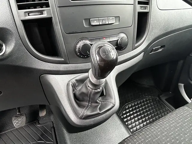 Deze Mercedes-Benz Vito 110CDI in de L2 uitvoering is voorzien van o.a.: Airco, Radio met DAB, Passagiersbank, Achterklep om droog onder te werken, Elektrische ramen, Centrale deurvergrendeling met afstandsbediening, Betimmerde Laadruimte, Houten Laadvloer, enz..