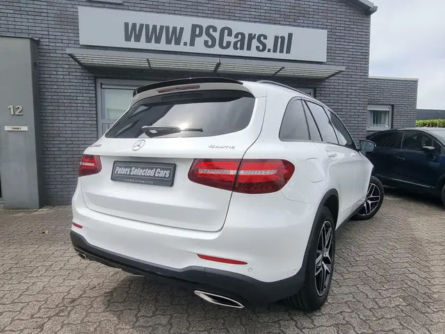 Zeer mooi uitgevoerde GLC 250 4Matic van 12-2017.De witte carrosserie kleur in combinatie met het panorama dak en het AMG Night pakket geven de auto uitstraling.