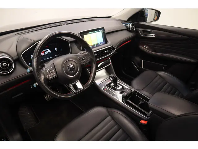 Geavanceerde techniek, waarbij een verbrandingsmotor samenwerkt met een elektromotor, zorgt dat deze auto geweldige prestaties neerzet en toch zuinig is met brandstof. Een krachtige motor geeft deze auto zijn sportieve prestaties. De verwarmbare voorstoelen zijn een weldaad voor rug en schouders. Pittig rijden wordt nog comfortabeler dankzij de fraaie sportstoelen. Dat noemen ze nou een ruimtelijk effect: het elektrisch bediende glazen panoramadak. Met een druk op de knop gaat de elektrische achterklep open. Tot de voorzieningen van deze auto behoren 18 inch lichtmetalen velgen, LED koplampen, donker getint glas achter, in delen neerklapbare achterbank, LED-achterlichten en verstelbare lendensteunen.Ontdek de digitale mobiliteitswereld, met zijn dashboard dat alle noodzakelijke informatie projecteert om uw reis comfortabel en veilig te maken. Met de hulp van vier camera's, biedt de 360 graden camera op deze auto een panoramisch zicht, wat bijzonder nuttig is bij het parkeren en manoeuvreren. Met adaptive cruise control houdt de auto zelfstandig afstand tot uw voorligger. Een veiligheidsverhogende optie waarmee u comfortabel onderweg bent. Na een lange werkdag in de file: daar zit niemand op te wachten. Gelukkig helpt de file assistent een handje. Het radarsysteem meet de ruimte tot de voorligger en bewaakt de juiste afstand. Stilstaan? Dan remt en stopt de auto vanzelf. Via uw smartphone en Connected Services checkt u eenvoudig de belangrijke functies van de auto, overal en altijd. De uitrusting van deze MG is met dashboard met spraakbediening, full map navigatiesysteem, electronic climate control, DAB ontvangst, regensensor en keyless entry behoorlijk compleet.