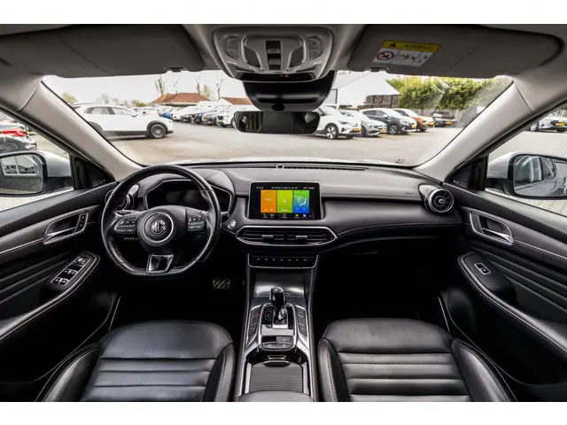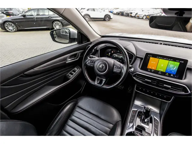 Met een auto als deze MG EHS komt u absoluut goed voor de dag. Deze auto komt uit 2022. Onder de motorkap ligt een zuinige viercilinder benzinemotor. Maximaal comfort en stijl krijgt u dankzij het lederen interieur. De verwarmbare voorstoelen zijn een heerlijke extra optie, waarmee u uzelf en uw bijrijder een groot plezier doet. Altijd een goede zitpositie bij iedere snelheid, dankzij de sportstoelen. Licht, luxe en gemak komen samen in de vorm van het elektrische bediende glazen panoramadak. Een handige voorziening op deze auto is de elektrische achterklep die u op afstand kunt openen. In deze auto profiteert u onder andere ook van: 18 inch lichtmetalen velgen, Full LED koplampen, donker getint glas achter, in delen neerklapbare achterbank, LED-achterlichten en verstelbare lendensteunen.De standkachel verwarmt het interieur voor. Dat betekent meer comfort voor u en minder slijtage voor de auto. Praktisch, helder en uitermate handig is het digitale dashboard. Alle functies haarscherp in beeld! De vier camera's genereren samen een 360 graden beeld rond de auto, zodat u een volledig overzicht hebt van wat er rondom uw auto gebeurt. Adaptive cruise control is veilig en comfortabel. De snelheidsregelaar houdt automatisch afstand tot het voertuig dat voor u rijdt. Filerijden zal nooit een pretje worden. Maar met de file assistent wordt het wél relaxter. Deze geavanceerde optie zorgt dat u automatisch de juiste afstand tot de voorligger houdt en remt bovendien als de rij tot stilstand komt. U bent in deze MG ook voorzien van dashboard met spraakbediening, connected drive services, full map navigatiesysteem, automatische airconditioning, audiobediening op het stuur en DAB ontvangst.