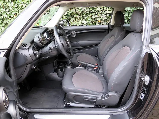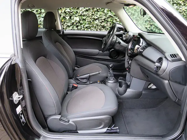 Leuk uitgevoerde en goed onderhouden Mini Cooper F56! Deze leuke 3drs Mini is geleverd in de kleur Midnight Black metallic met een Carbon Black stoffen Firework interieur met een Carbon Black colourline, Hazy Grey interieurdelen en grijze 15" Heli Spoke velgen. Verder is deze Mini uitgerust met Navigatie met touchscreen, Connected Drive Services, bluetooth, Climate control, multifunctioneel 3-spaaks stuur met cruise control, Regensensor, lichtsensor en Isofix. Daarnaast heeft de vorige eigenaar de Mini een stuk leuker gemaakt door het dak rood te wrappen!Eventueel kun je deze Mini nóg leuker maken met Union Jack achterlichten, motorkapstrepen, andere velgen en/of andere spiegelkappen! Vraag ons naar de mogelijkheden, wij denken graag met je mee!
