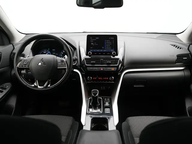 De standkachel verwarmt het interieur voor. Dat betekent meer comfort voor u en minder slijtage voor de auto. Elk van de vier camera's op deze auto draagt bij aan het creëren van een onbelemmerd uitzicht van 360 graden rondom de auto. Als u de adaptive cruise control inschakelt, regelt de auto zelf de snelheid en de afstand tot de auto voor u. Het complete geluidsspectrum van de hi-fi krijgt een extra boost door het high performance audiosysteem. Ook over uw schouder ziet u onderweg niet alles wat er aan de achterzijde gebeurt. Daarom heeft deze Mitsubishi Eclipse Cross een achteropkomend verkeer waarschuwing. Deze auto is voorzien van navigatiesysteem, electronic climate control, schakelpaddles aan het stuur, DAB ontvangst, regensensor en keyless entry.