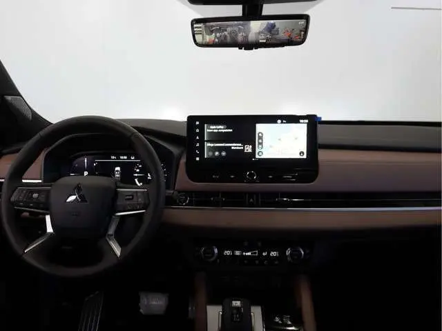 Boostactie nu met €1.000 extra korting! Heel veel kwaliteit en betrouwbare techniek vindt u bij deze Mitsubishi. 'Drive your ambition', dat is duidelijk. Het gaat hier om een nieuwe auto, die uit voorraad leverbaar is. De aanwezige hybride motor is een slimme extra. Tijdens het rijden en remmen laadt de accu bij, zodat de elektromotor de brandstofmotor kan ondersteunen of het zelfs helemaal overnemen. Dat scheelt in kosten! Lederen bekleding is in deze rijk uitgeruste auto ook aanwezig. Doe maar luxe! Neem plaats in de verwarmbare voorstoelen en voel hoe de massagefunctie zorgt voor verfrissende doorbloeding op de lange ritten. Zit u goed? De stoelen zijn eenvoudig instelbaar dankzij de elektrische bediening met geheugen. Comfort, licht en het complete gevoel van ruimte wordt verzorgd door het elektrisch bediende panoramadak. De elektrische achterklep opent met een druk op de knop, zodat u gemakkelijk toegang heeft tot de bagageruimte. Ook de passagiers worden verwend, door de verwarmde achterbank. Bij de zeer complete uitrusting van deze auto behoren ook 20 inch lichtmetalen velgen, LED-koplampen, aluminium dakrailing, donker getint glas achter, elektrisch verstelbare buitenspiegels met geheugenfunctie en elektrisch bedienbare ramen voor. De afneembare trekhaak is leverbaar voor € 1450,-.Nooit meer beslagen ramen of ramen krabben. Met deze auto bent u altijd klaar voor de winter dankzij de standkachel. Met het digitale dashboard in deze auto kunt u de interface van uw cockpit personaliseren. Door het combineren van beelden van vier camera's, biedt de 360 graden camera een naadloos en gedetailleerd beeld van de hele omgeving rondom deze auto. Adaptive cruise control is veilig en comfortabel. De snelheidsregelaar houdt automatisch afstand tot het voertuig dat voor u rijdt. De high-end technologie van het high performance audiosysteem staat garant voor geluid van het hoogste niveau. Met electronic climate control, draadloos opladen, keyless entry en automatisch dimmende binnenspiegel is deze Mitsubishi helemaal compleet.