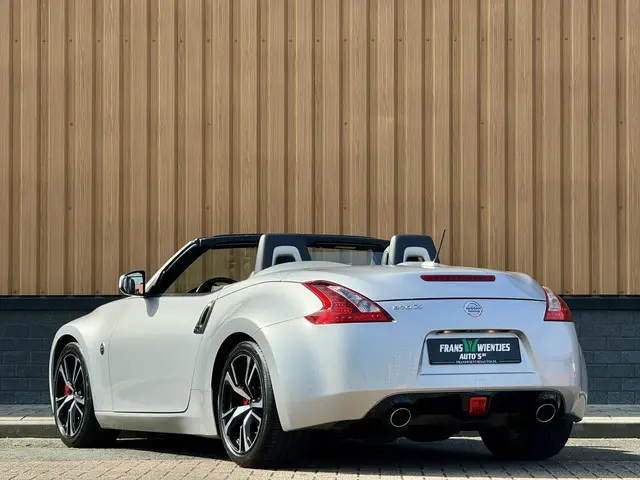 Zodra de zon zich laat zien, kunt u heerlijk genieten achter het stuur van deze cabriolet. Met deze Nissan 370Z Roadster kunt u weer jaren vooruit, de kilometerteller staat op 59944. In deze auto vindt u een benzinemotor en een automatische transmissie. Deze Nissan 370Z Roadster legt bestuurder én bijrijder compleet in de watten met de verwarmbare voorstoelen. Goeie looks? Jazeker! Maar de sportstoelen zorgen ook voor een goed gesteunde en comfortabele zit. Het elektrisch bediende cabriodak opent en sluit automatisch. Met de krachtige xenonverlichting rijdt u ontspannen in het donker. Bij de uitrusting van deze auto horen onder meer 19 inch lichtmetalen velgen, halflederen bekleding, elektrisch inklapbare buitenspiegels, LED-achterlichten, verstelbare lendensteunen en elektrisch bedienbare ramen.Met de achteruitrijcamera ziet u precies wat er achter de auto gebeurt. Spraakbediening verhoogt de veiligheid en het gebruiksgemak. De auto luistert naar uw instructies en volgt ze op. Uw favoriete muziek klinkt beter dan ooit met het ingebouwde high performance audiosysteem. U weet altijd waar u moet zijn, dankzij het navigatiesysteem. Het comfort wordt verhoogd door de aanwezige automatische airconditioning. De uitrusting van deze Nissan is met schakel flippers aan het stuur, regensensor, cruise control, keyless entry, automatisch dimmende binnenspiegel en centrale deurvergrendeling met afstandsbediening behoorlijk compleet.