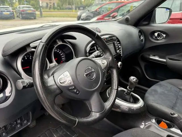 PRIJS IS RIJKLAAR AFGELEVERD.! INCLUSIEF BOVAG GARANTIE.!Goede prestaties, aantrekkelijke extra's en perfect onderhouden: deze Nissan Juke stelt zich graag aan u voor! Een viercilinder benzinemotor en een handgeschakelde zesversnellingsbak verzorgen de aandrijving van deze SUV. Elke rit in deze Nissan Juke heeft een tikje meer, dankzij het lederen interieur. Fun en functie wordt samengebracht in het elektrisch bedienbare glazen panoramadak. Tot de uitrusting behoren ook 17 inch lichtmetalen velgen, LED-dagrijverlichting, zwarte hemelbekleding, donker getint glas achter en in delen neerklapbare achterbank.