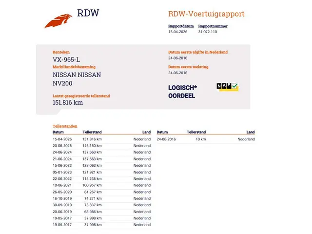 Voertuiggegevens van deze Nissan NV200