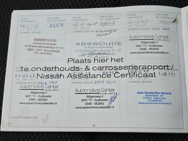 Onderhoudsboekjes: Aanwezig