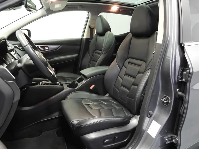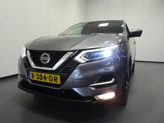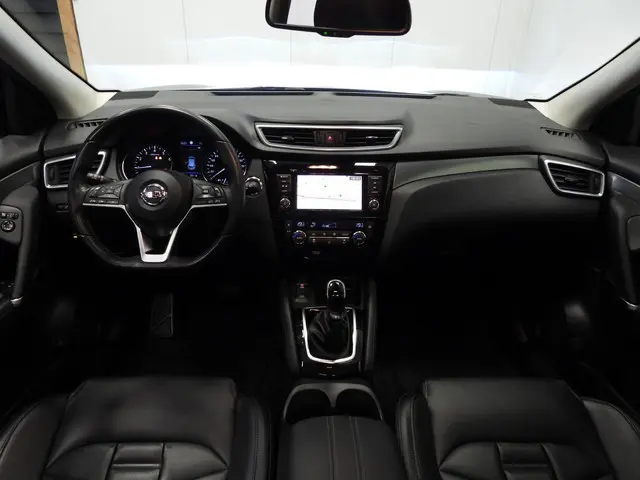 Het is niet alleen maar een stoer uiterlijk, deze Nissan Qashqai biedt ook de sportieve rijkwaliteiten die u zoekt. De aandrijving komt voor rekening van een benzinemotor en een automatische transmissie. Het stijlvolle lederen interieur geeft deze Nissan Qashqai net dat beetje extra. Doe maar luxe! Neem plaats in de verwarmbare voorstoelen en voel de weldaad in koude dagen. Stevig ondersteund door de sportstoelen blijft u bij elke beweging op uw plek. Het glazen panoramadak geeft u een ongekende rijsensatie: wat een licht en zicht! Tot de uitrusting behoren ook 19 inch lichtmetalen velgen, LED koplampen, extra getint glas, in delen neerklapbare achterbank, LED-achterlichten en verstelbare lendensteunen.De 360 graden camera op deze auto biedt u een volledig, panoramisch zicht op de omgeving. Met de ingebouwde spraakbediening kunt u de belangrijkste voertuigsystemen bedienen met stemcommando's. De auto is voorzien van een trekhaak en is een uitstekende caravantrekker. Nooit meer de weg kwijt: daarvoor zorgt het onboard full map navigatiesysteem. Met de climate control selecteert u de gewenste temperatuur. Het systeem doet de rest. En dan is deze auto ook nog eens voorzien van audiobediening op het stuur, DAB ontvangst, regensensor, cruise control, keyless entry en automatisch dimmende binnenspiegel.