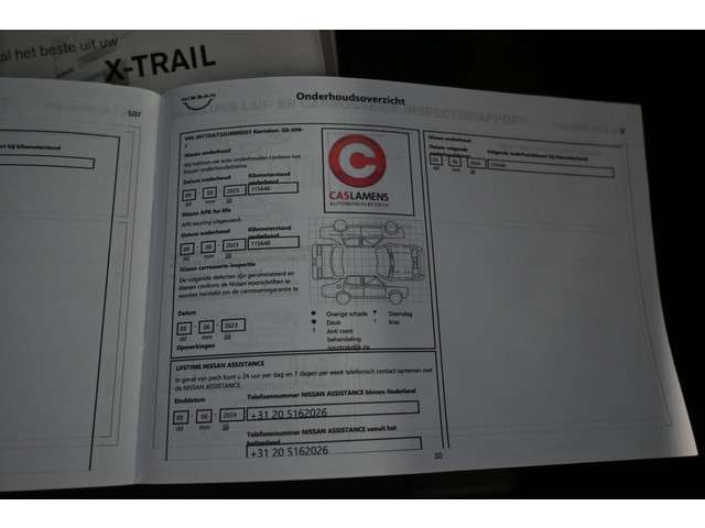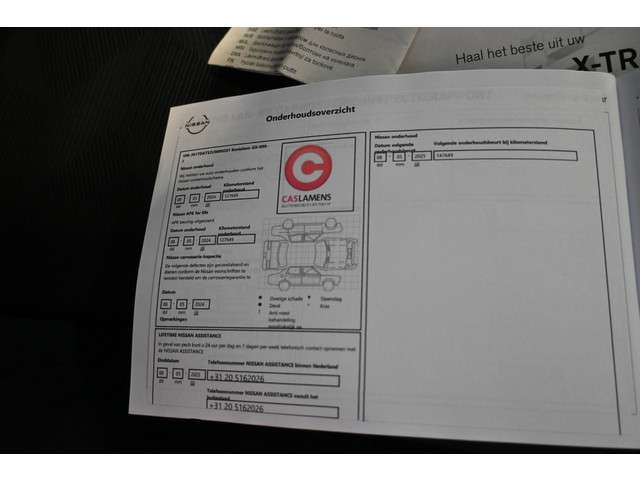 Innovatief design, doordachte techniek en een hoog kwaliteitsniveau zijn typische kenmerken van de Japanse automerken. Dat is te merken aan deze Nissan X-Trail, een auto uit 2015 die 147319 kilometer heeft gelopen. Deze goed onderhouden auto is van de eerste eigenaar. Met zijn benzinemotor en handgeschakelde zesversnellingsbak is deze Nissan een prettige auto om te rijden. Een praktische extra is de elektrisch bedienbare achterklep die opent en sluit met een druk op de knop. Vergezichten krijgen een extra dimensie door het glazen panoramadak. Verder is de Nissan uitgerust met: 19 inch lichtmetalen velgen, adaptief dempingsysteem, LED-dagrijverlichting en donker getint glas achter.Een handige optie is de achteruitrijcamera. Achteruitrijden, inparkeren en manoeuvreren gaat gemakkelijker dan ooit. Als u regelmatig met een aanhanger of een fietsendrager op pad bent, is de afneembare trekhaak een praktische extra. Het infotainmentaanbod is zeer uitgebreid. Ontspannen reizen doet u met behulp van het full map navigatiesysteem terwijl u muziek afspeelt via het audio-installatiesysteem met DAB-radio. Met automatische airconditioning hoeft u alleen de gewenste temperatuur in te stellen. Het systeem doet de rest. Het luxeniveau in deze Nissan is niet alleen gericht op comfort, maar ook op uw veiligheid. Tal van sensoren helpen u om de omgeving in de gaten te houden. De automatisch inschakelbare verlichting zorgt dat automatisch de verlichting wordt ingeschakeld als het donker wordt, wat bijvoorbeeld in tunnels erg handig is. En de regensensor zet de ruitenwissers aan zonder dat u eraan hoeft te denken. Ook cruise control, keyless entry en automatisch dimmende binnenspiegel horen tot de voorzieningen op deze auto.