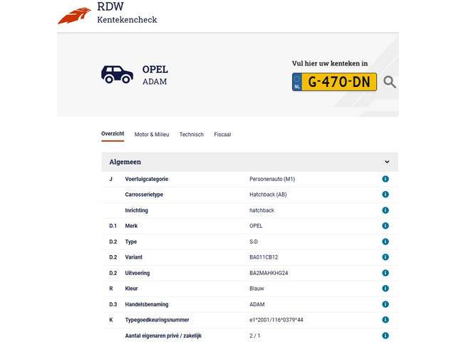Voertuiggegevens van deze Opel Adam