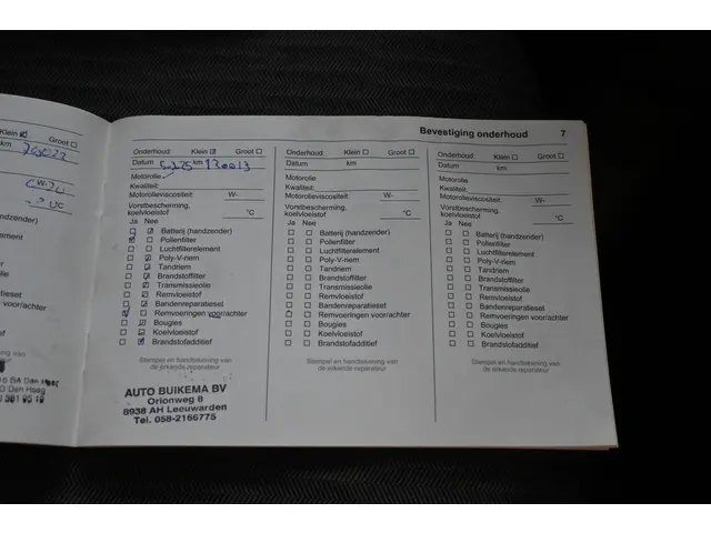 Onderhoudsboekjes: Aanwezig
