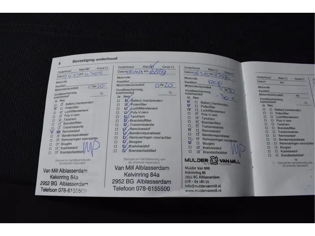 Onderhoudsboekjes: Aanwezig