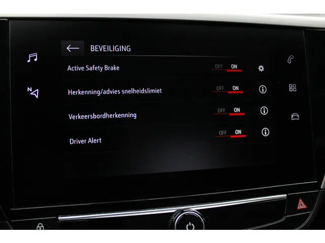 Pragmatisch en veilig als deze auto is, beschikt hij over diverse veiligheidssystemen. In het instrumentarium kunt u bovendien de verkeersborden zien die u onderweg tegenkomt. Zo helpt deze Opel u om veiliger te rijden. Een camera houdt de juiste koers binnen de rijstrook in de gaten en het Lane-keeping systeem corrigeert bij afwijkingen. Forward collision warning waarschuwt voor een kop-staart botsing. In deze Opel vinden we verder een driver alert systeem, Abs - anti blokkeer systeem met brake assistant, vermoeidheidsherkenning en bandenspanningcontrolesysteem.