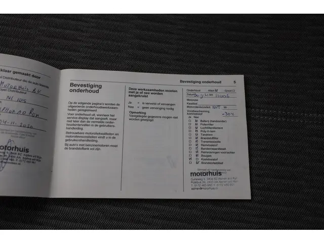 - Onderhoudsboekje (fysiek)