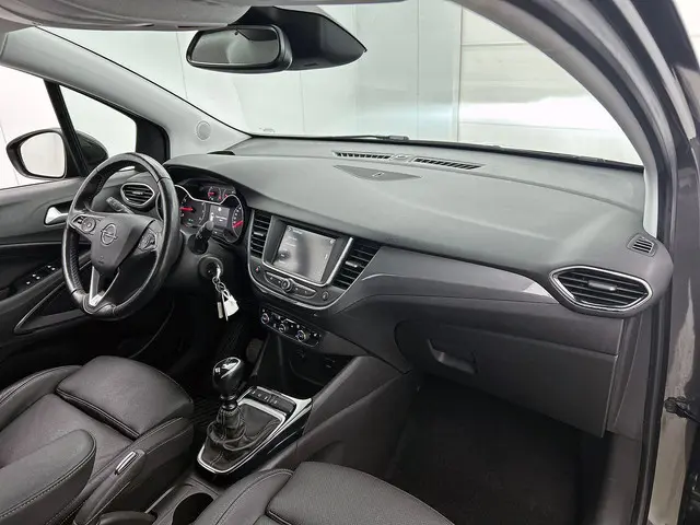 Opel zet zichzelf neer als het vooruitstrevende merk voor een brede groep liefhebbers. 'De toekomst is voor iedereen' zeggen ze, en dat is precies waar het om gaat. Het is vermeldenswaard dat deze auto maar 31595 kilometer heeft gereden sinds 2021. In deze auto vindt u een benzinemotor en een handgeschakelde zesversnellingsbak. Met zijn lederen bekleding is deze Opel comfortabel en stijlvol. Bestuurder en bijrijder krijgen een warm welkom: deze Opel Crossland is voorzien van verwarmbare voorstoelen. Ontspannen rijden begint met de juiste zit. Daar zorgen de comfortstoelen wel voor. Aan een fijn opwarmertje in de kille dagen is gedacht, in de vorm van een verwarmd stuurwiel. Bij de uitrusting van deze auto horen onder meer 16 inch lichtmetalen velgen, LED koplampen, in delen neerklapbare achterbank en verstelbare lendensteunen.Altijd een deskundige gids aan boord, dankzij het navigatiesysteem. Tot de standaard uitrusting van deze auto hoort ook electronic climate control. Mag de muziek wat zachter? U past het volume probleemloos aan met de audiobediening op het stuur. Geniet van een ruime selectie digitale radiostations met de DAB-ontvanger. De elektronische systemen in deze Opel helpen u actief om comfortabeler te rijden. Een automatisch inschakelbare verlichting en een regensensor houden de omstandigheden onderweg in de gaten. Wat u ook in deze auto kunt vinden zijn cruise control, automatisch dimmende binnenspiegel, isofix-aansluiting en boordcomputer.