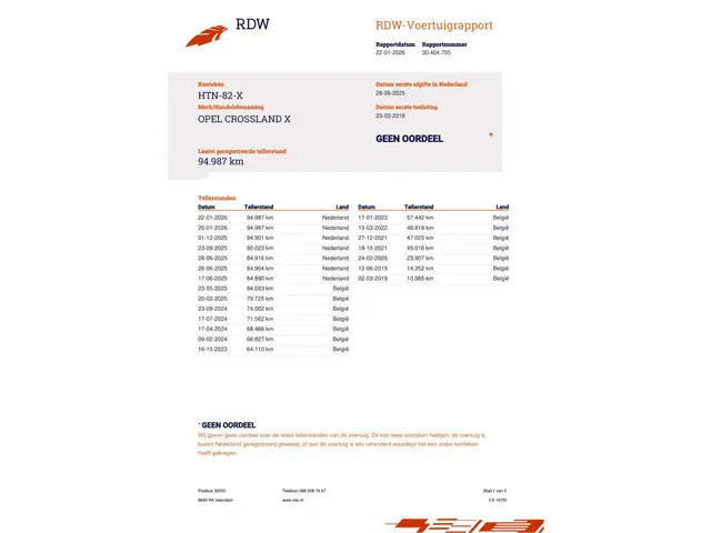 De kilometerstand is logisch en aantoonbaar via het Carfax-rapport en het RDW tellerrapport met logisch oplopende kilometerstanden, gebaseerd op zowel de Belgische Car-Pass als de Nationale Autopas.