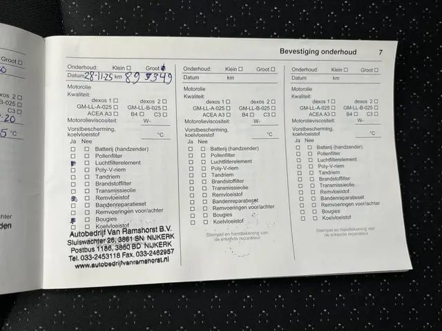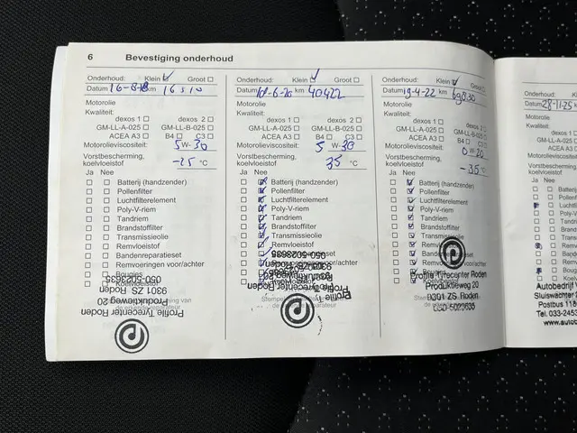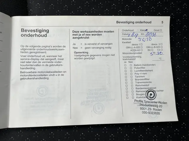 Onderhoudsboekjes: Aanwezig