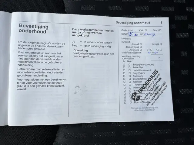 Onderhoudsboekjes: Aanwezig