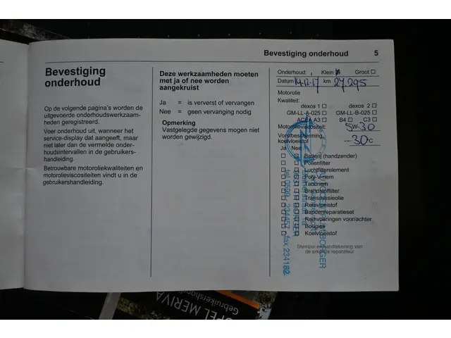 Onderhoudsboekjes: Aanwezig